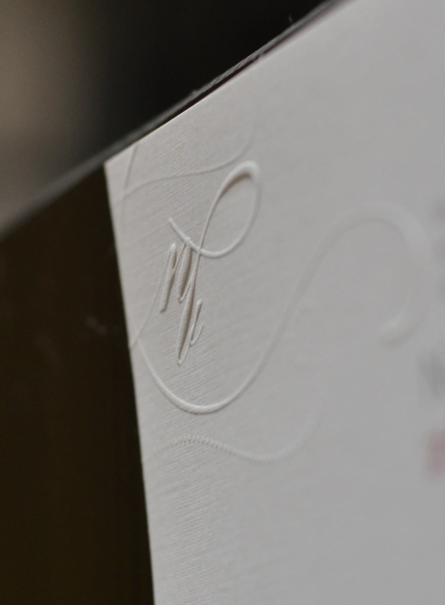 We also decided to have our initials blind embossed to add a bit of texture to the invitation. One thing we really wanted was for each invitation to feel personal, so we had all our guests' names printed on their invitation.